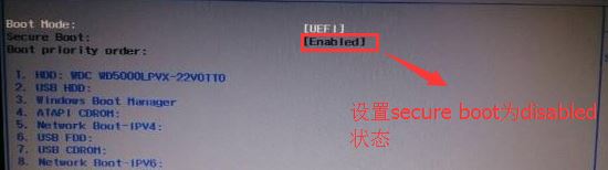 返回BOOT选项,将Secure BOOT默认enabled为disabled,关闭安全启动