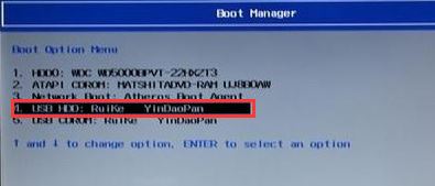 5、插入U盘启动盘,重启时不停的按下f12,打开Boot Manager,选择USB HDD回车从U盘启动,如截图: