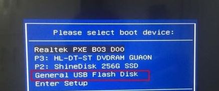 4、保存设置后自动重启进入LOGO画面时,一直按重启按F12快捷键,在启动菜单中选择USB启动进入PE,如图: