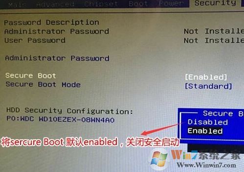 1、重启笔记本按delete进入BIOS设置,在Security下把Secure Boot Control设置为Disabled,关闭"安全启动"如下图所示,然后按F4保存更改重启,如图:
