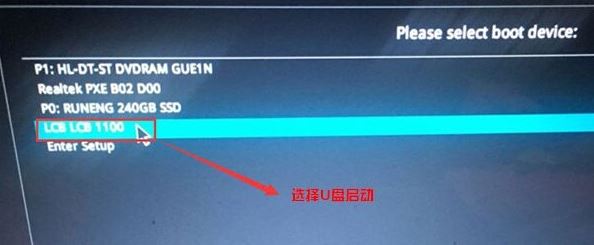 5、插入U盘启动盘,重启按ESC选择识别到U盘启动项,回车;