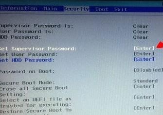 2、如果Secure Boot灰色无法设置,则转到Security,选择Set Supervisor Password回车设置密码,再返回BOOT选项,将Secure BOOT默认enabled为disabled,(注:改完secure boot后再设置密码为空即可,要不每次进BIOS都要设置)如下图所示;