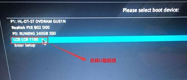 5、插入U盘启动盘,重启按ESC选择识别到U盘启动项,回车,如图: