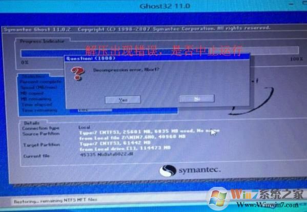 1、出现这一问题的时候,是镜像解压错误的提示,大家首先要考虑是不是下载的系统安装镜像有问题,建议重新去下载另一个版本,或是另一个网站下载系统,然后再试试。