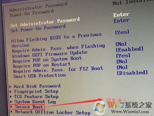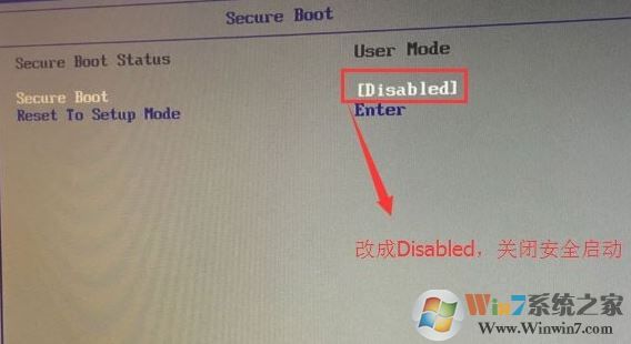 1、开机一直按F2或(FN+F2)进入BIOS,按→方向键切换到Security,选择Secure Boot回车设置成Disabled;