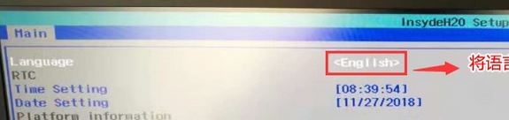 2、进入BIOS界面后,我们首先把BIOS语言改成“简体中文”,如下图所示: