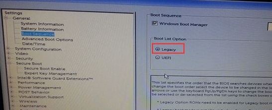 4、将BOOT Sequence右边选项的UEFI改成Legacy,将uefi引导改成传统引导(注意引导模式改成了legacy后就要将硬盘分区类型改成MBR,或直接是采用uefi+gpt引导方式安装,一定要保持legacy+mbr或uefi+gpt),如果改成legacy+mbr引导不了后,注意将引导模式改成uefi+gpt(戴尔电脑win10改win7后用legacy模式开机出现NO Boot Device Found怎么办?),改完后点击下方的保存,如下图所示;