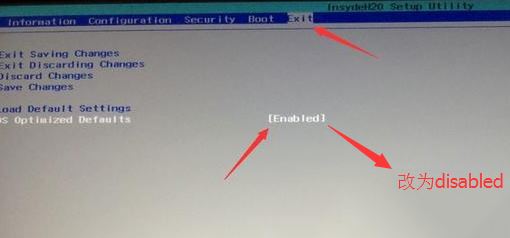 2、转到Exit,把OS Optimized Defaults设置为Disabled或Other OS,如图所示: