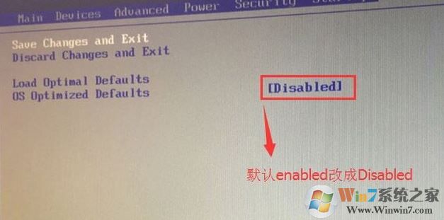 2、转到Exit,把OS Optimized Defaults设置为Disabled,如图:
