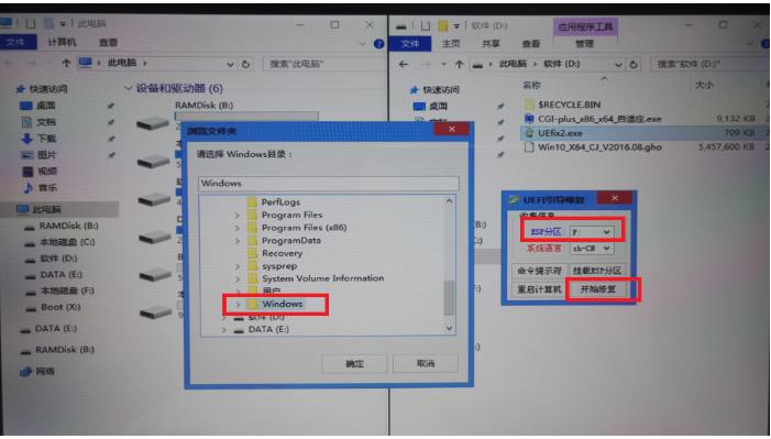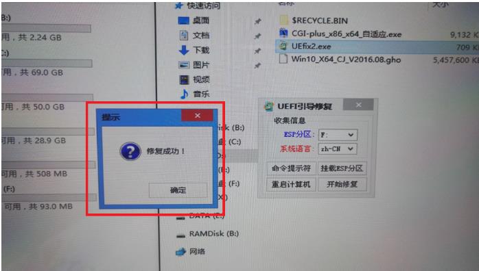 4、UEFI引导提示修复成功,再次重新启动,就可以开始重装系统了