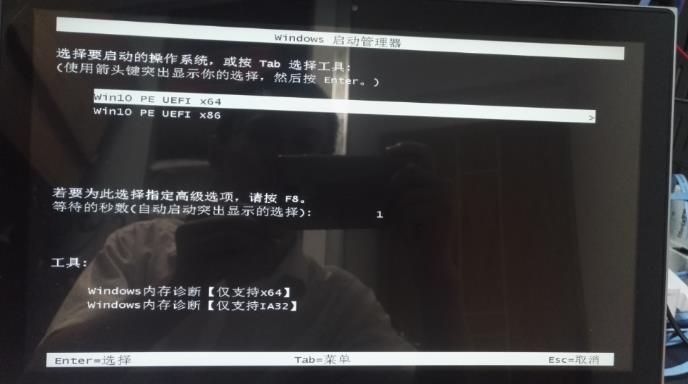 2、完成之后重启(有些平板可以不重启就执行下面的,但是如果你执行了没反应,或者跟下面图示不一致,则重启之后再操作),但是如果拔掉U盘,你还无法直接启动的(因为EFI分区启动信息有问题,虽然C盘已经有了Ghost的文件,但还需要引导,如果既没有插入可启动的U盘,本身系统又启动不了,就会停留在Surface UEFI界面上,只能插入U盘,然后Exit页面点重启)。为了修复这个启动问题,再次从U盘启动PE,然后双击UEfix2.exe,点击挂在ESP分区,然后可以发现计算机中多了一个F盘(大概93M左右)