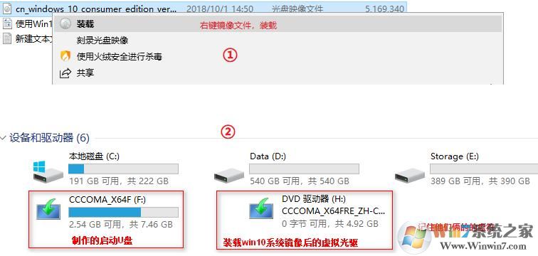 首先装载win10系统镜像到虚拟光驱;使用系统自带的dism命令工具将原镜像文件中的install.wim拆分为多个小的文件,并拷贝到启动U盘里面的source下。拆分操作会形成2个文件:install.swm和install2.swm来替代install.wim。这样4GB限制问题就解决了!