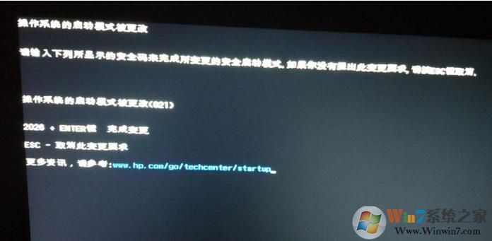 4、电脑重启前记得插上U盘,电脑重启后会出现如下图所示界面,他要求你输入四个数字并按下“Enter键”完成变更,这四个数字是随机的,通过键盘输入数字和Enter。
