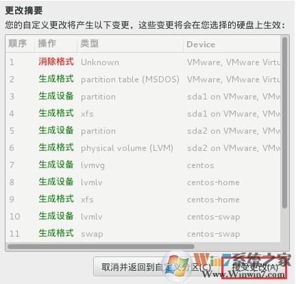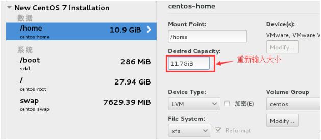 至于这个分区的类型,也就是Device Type这里,按照它默认就好,即/、swap、/home是LVM类型,/boot是标准分区