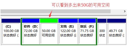 4、压缩好之后,从出了一个50G的可用空间;然后可以先不用管它。