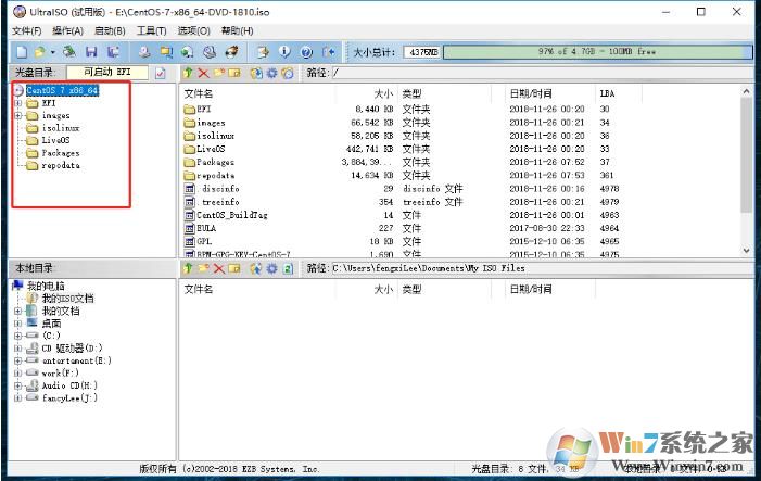 2、然后就会加载很多的文件夹(如果加载不出来就是软碟通的版本问题)