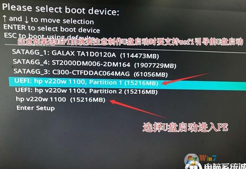 1、插入U盘启动盘,重启按ESC选择识别到U盘启动项,选择后回车;