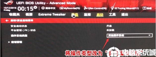 3、再返回到"安全启动菜单"的选项,将操作系统类型改成"其它操作系统",如下图所示;