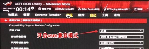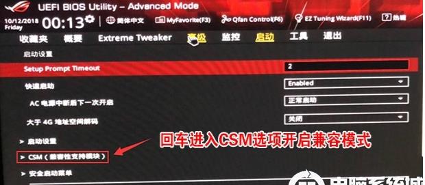 4、再返回到"启动"的选项,把CSM由disabled改成enabled,开启兼容模式,然后按F10保存如下图所示;