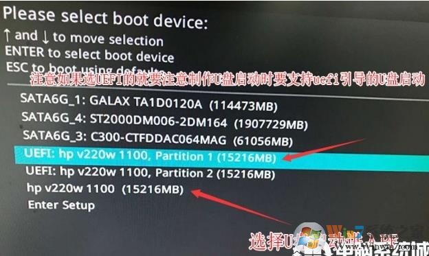 1、插入U盘启动盘,重启按ESC选择识别到U盘启动项,回车;