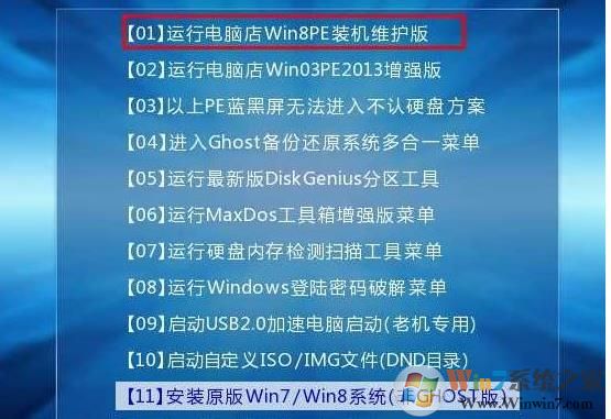 2、出现U盘启动盘选项时,选择WINPE进入;