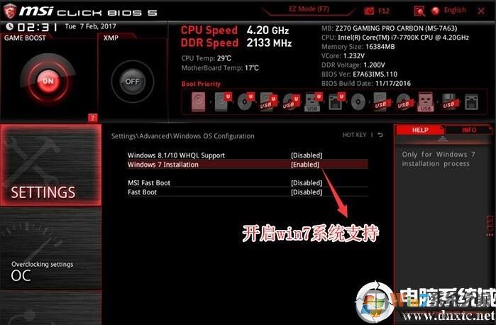 2、按键盘切换到切换到"sittings"选项,选择右边的“advanced”高级选项回车进入设置,如下图所示;