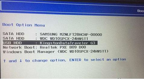 6、插入制作好的U盘启动盘,重启按F12或FN+F12调出启动管理对话框,选择USB HDD识别到U盘启动进入PE,回车;