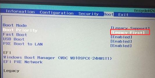 5、再把Boot Priority设置成Legacy First,按F10弹出窗口选择yes回车;