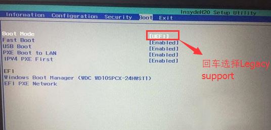 4、切换到Boot,把Boot Mode从UEFI改成Legacy Support(传统启动模式);