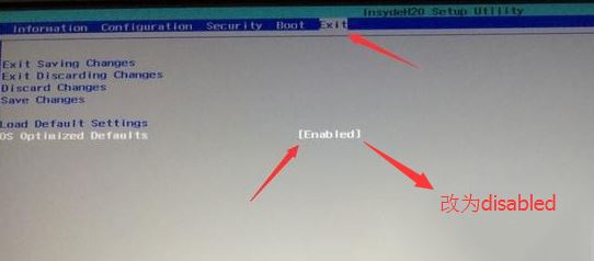 2、转到Exit,把OS Optimized Defaults设置为Disabled或Other OS(把默认系统改成其它);