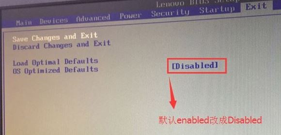 2、转到Exit,把OS Optimized Defaults设置为Disabled,改成支持win7系统模式,如截图哦: