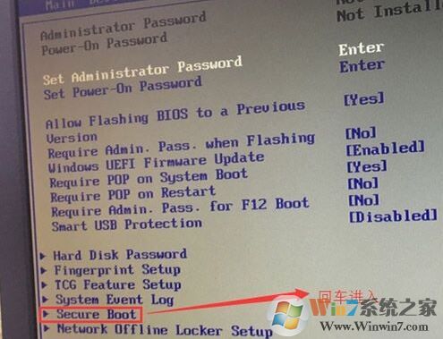 1、开机一直按F2或(FN+F2)进入BIOS,按→方向键切换到Security,选择Secure Boot回车设置成Disabled关闭安全启动,这里一定要关,否则进不了系统,如截图哦: