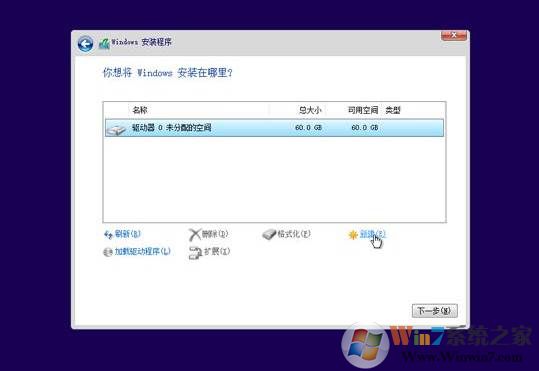 3、接下去启动到Windows10安装界面,在分区界面,大家要把所有之前MBR分区都删除掉,然后重新创建分区,系统会自动设置为GPT分区模式。