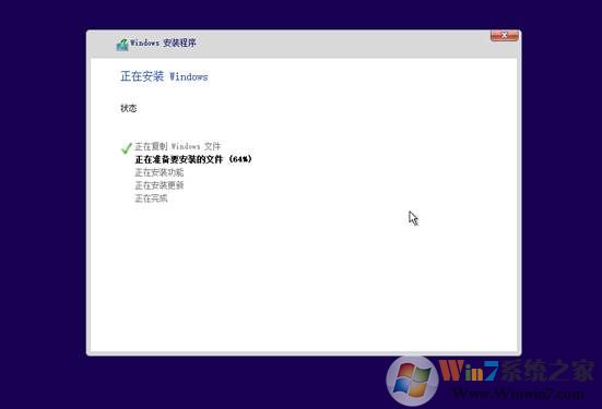 5、接下去的安装过程就很简单了,不需要你手动操作,最后设置一下Win10,就可以安装完成了。