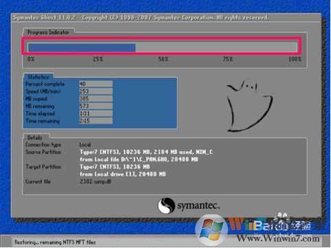 6.然后就进入ghost还原界面,进度走完系统便重装完成。