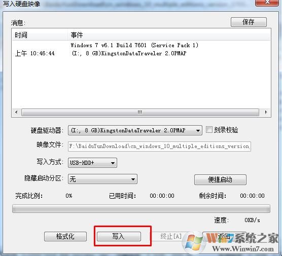 4、检查U盘是否选择对,然后点击写入 就可以了。