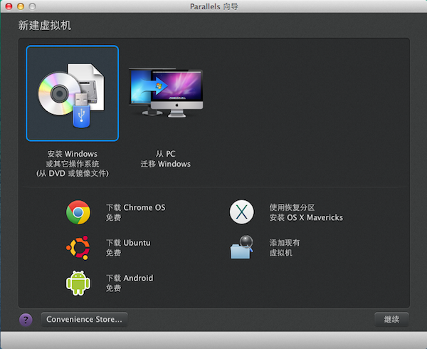 虚拟机软件的选择,推荐使用:Parallels Desktop 9 for Mac 大家可以在各大软件站下载到!
