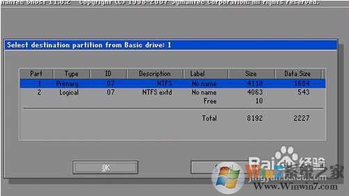 6、接下来就是选择要安装系统的分区了,选好后按“OK”键继续下一步: