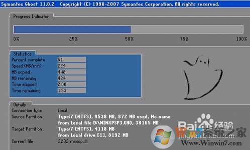 8、好了,下面开始正式的安装系统了,有详细的进度条显示: