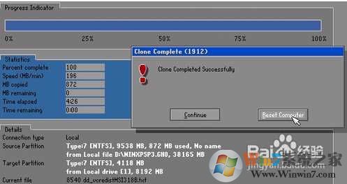 9、进度条进行到100%时,安装结束,会弹出一完成的对话框,选择“Reset Computer”重启电脑即可: