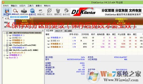 1、进入PE打开上图的Diskgenius分区工具;打开Diskgenius后,选择笔记本硬盘,然后点击“硬盘”——“删除所有分区“,删除前确保资料已经转移,删除后,点击保存更改;