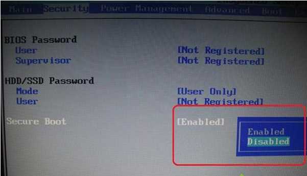 1、在开机启动时按F2进入BIOS,在Security下,把Secure Boot改成Disabled;