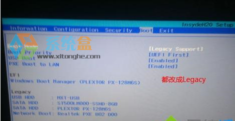 4、依次把Boot Mode改成Legacy Support,Boot Priority改成Legacy First;