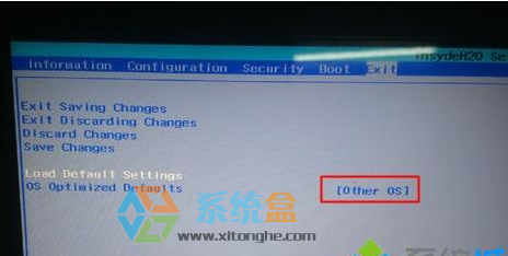 5、在Exit把OS Optimized Defaults从win8改成Other OS,选择Load Default Settings回车加载,选择Exit Saving Changes回车保存修改;