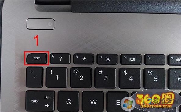1、首先按笔记本的“电源”按钮开机,然后立刻不断按键盘的“esc”键。如下图所示: