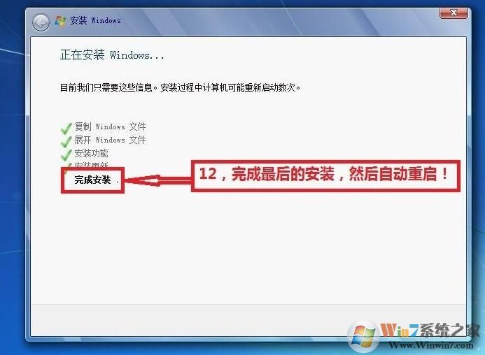 6、安装版比GHOST版本安装进度可能要慢一些,视电脑配置而定,请耐心等待,等到完成安装,会自动重启。
