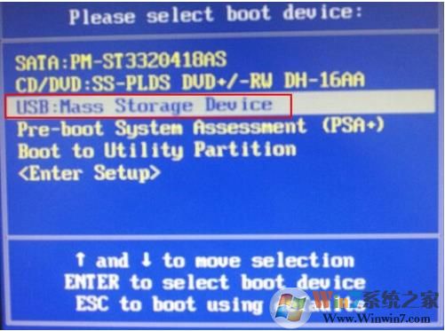 2、按下启动快捷键后系统进入到启动项选择窗口,利用键盘上的上下方向键选择u盘启动,其中USB开头的就是插入的u盘,按下回车键确认,如图所示:
