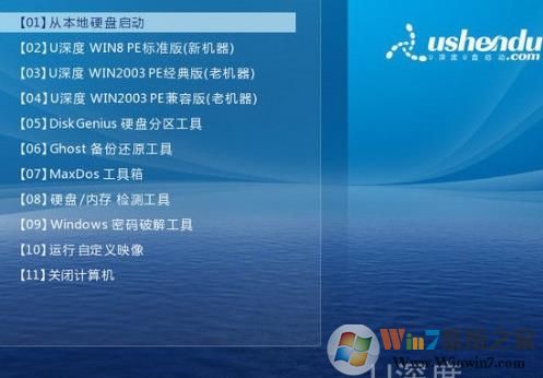 3、等待电脑出现u深度主菜单即可完成u盘启动,如图所示: