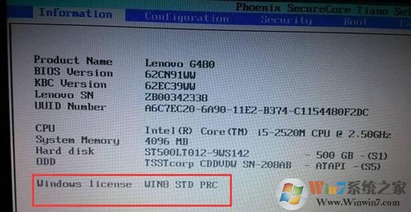 要判断自己的电脑预装的是不是Win8可以从BIOS中看到,下图bios芯片中有windows license就是微软授权预装win8的标准。