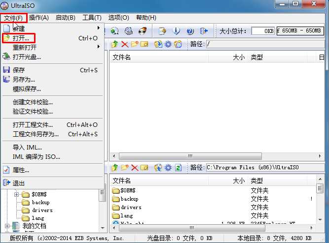 2、下载【UltraISO】软件,然后打开,并点击文件—打开,如下图;